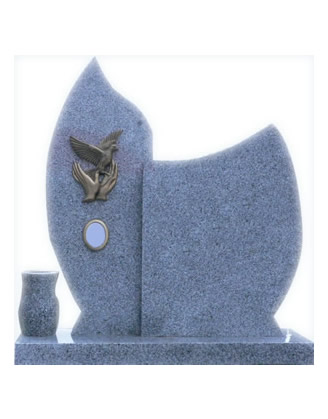 Pieza de mármol gris con corte curvado sobre zócalo de 8 cm. Detalle decorativo en bronce con colgador de foto. Jarron en mármol gris.