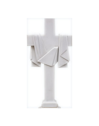 Cruz en color blanco macael. Brazo con imagen del sudario.